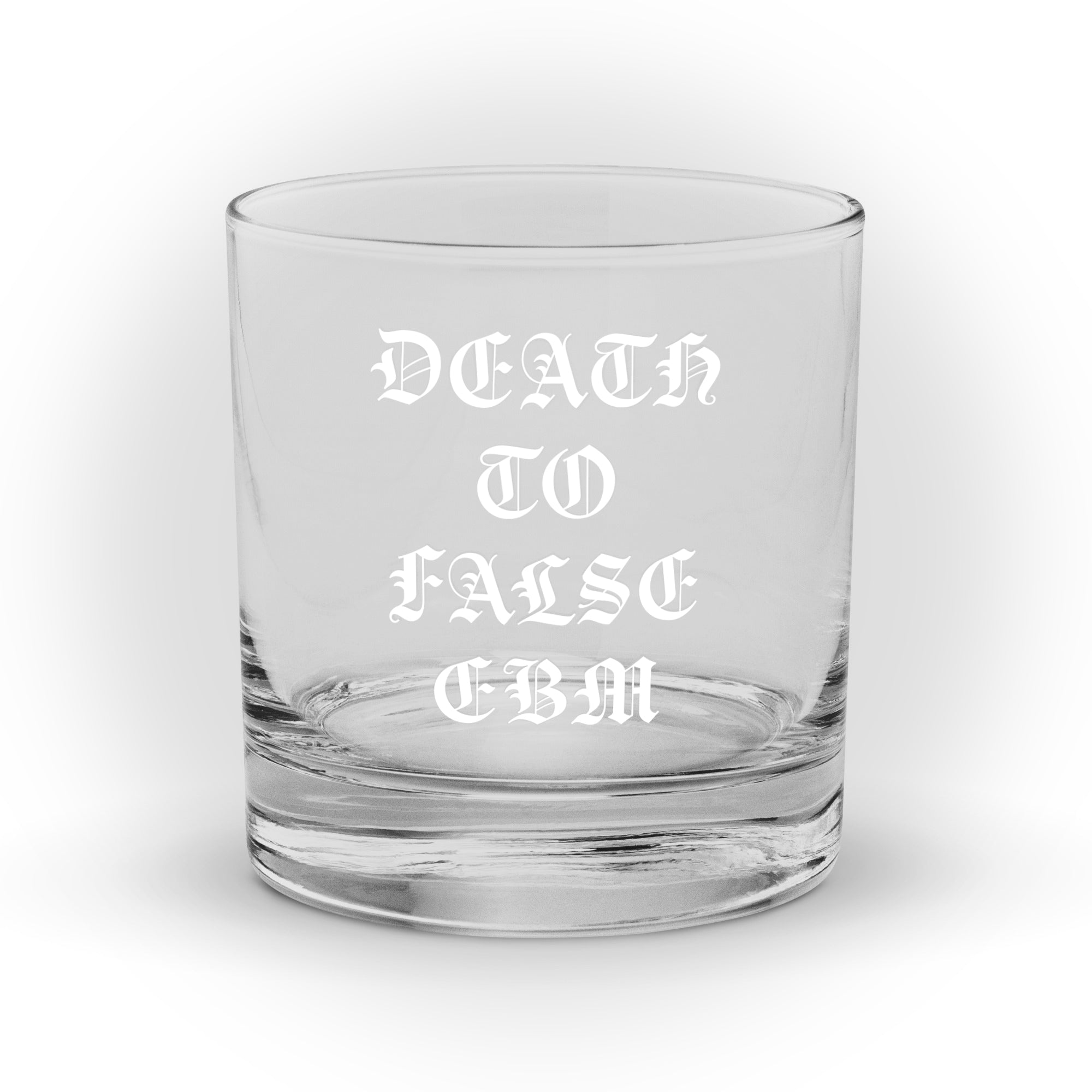 Bruce's dream tumbler! The Death to False EBM logo on a beautiful glassware whiskey tumbler. The I Die: You Die x Second Tooth collab you did not know you needed! A fat slice of proceeds will be donated to Doctors Without Borders.