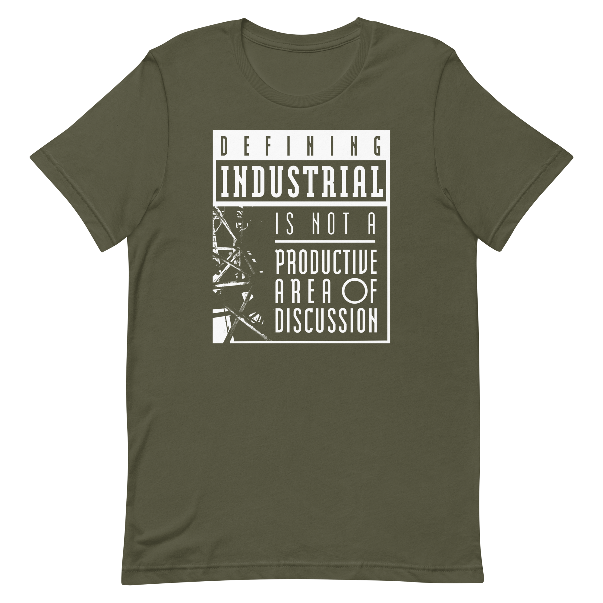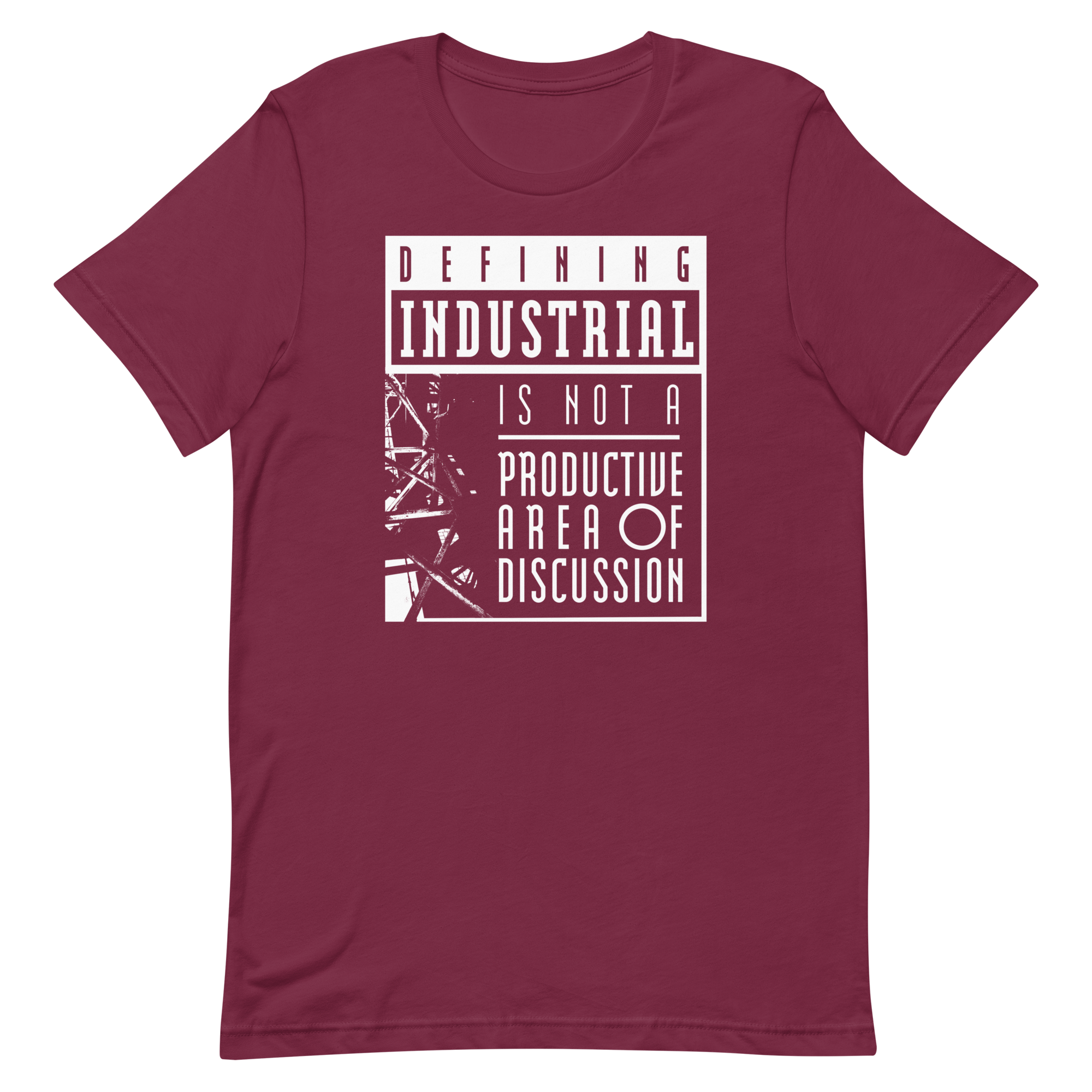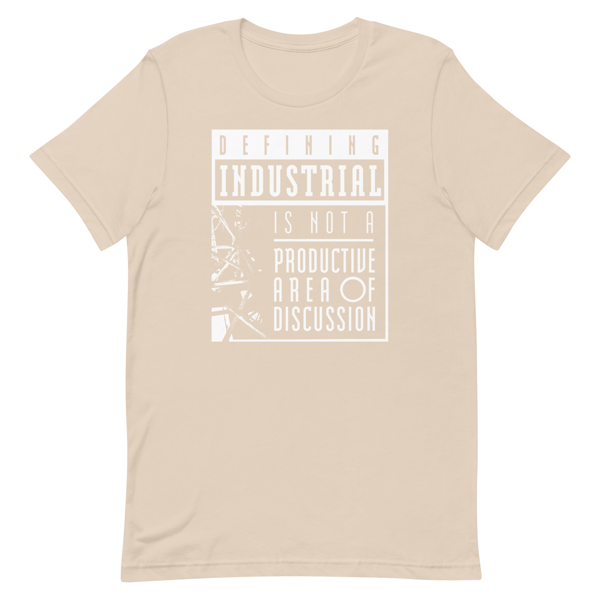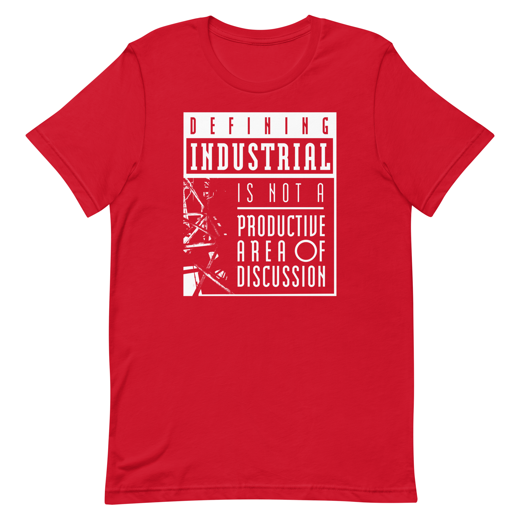 Defining Industrial is not a Productive Area of Discussion, don't you know? On a T-shirt! The I Die: You Die x Second Tooth collab you did not know you needed! A fat slice of proceeds will be donated to Doctors Without Borders.