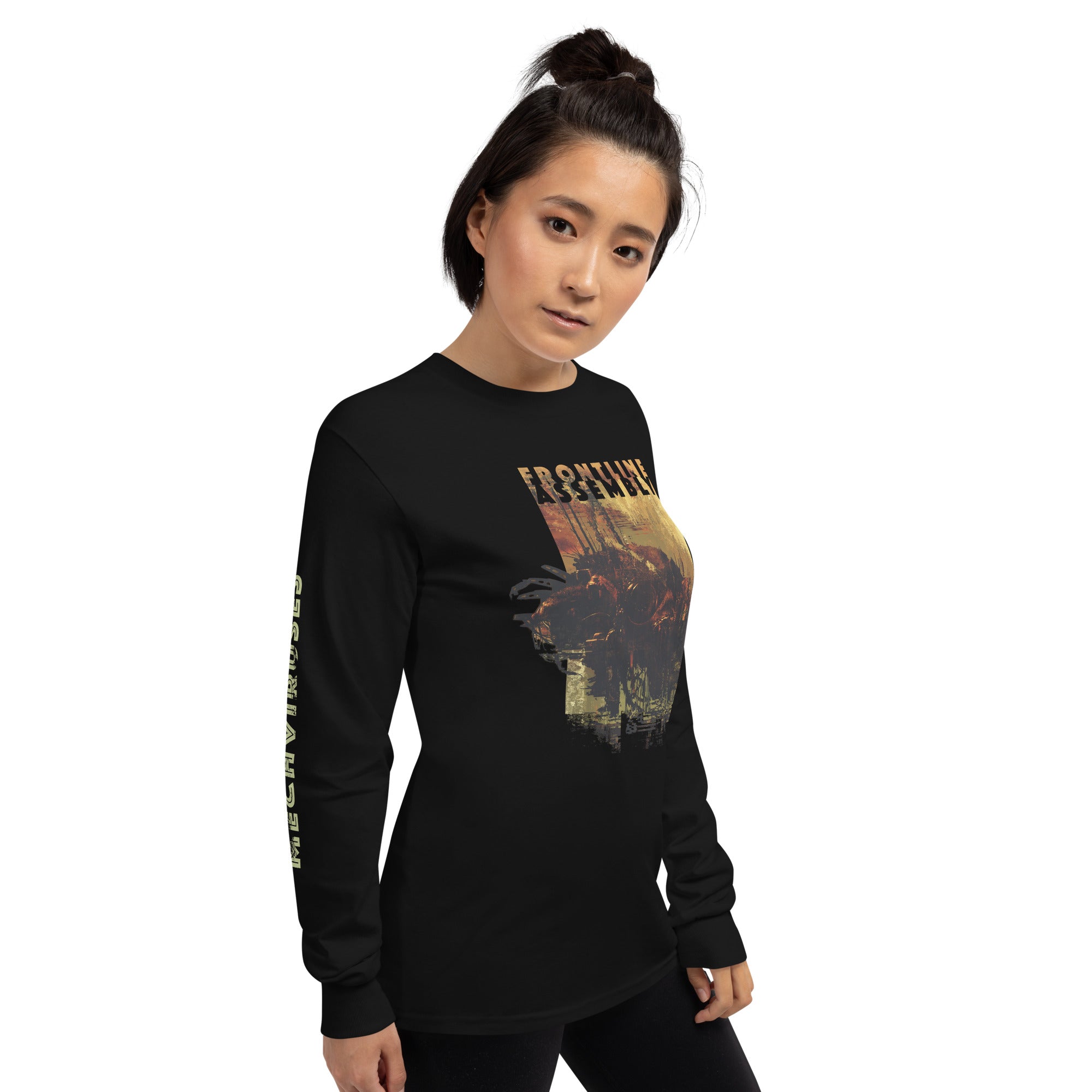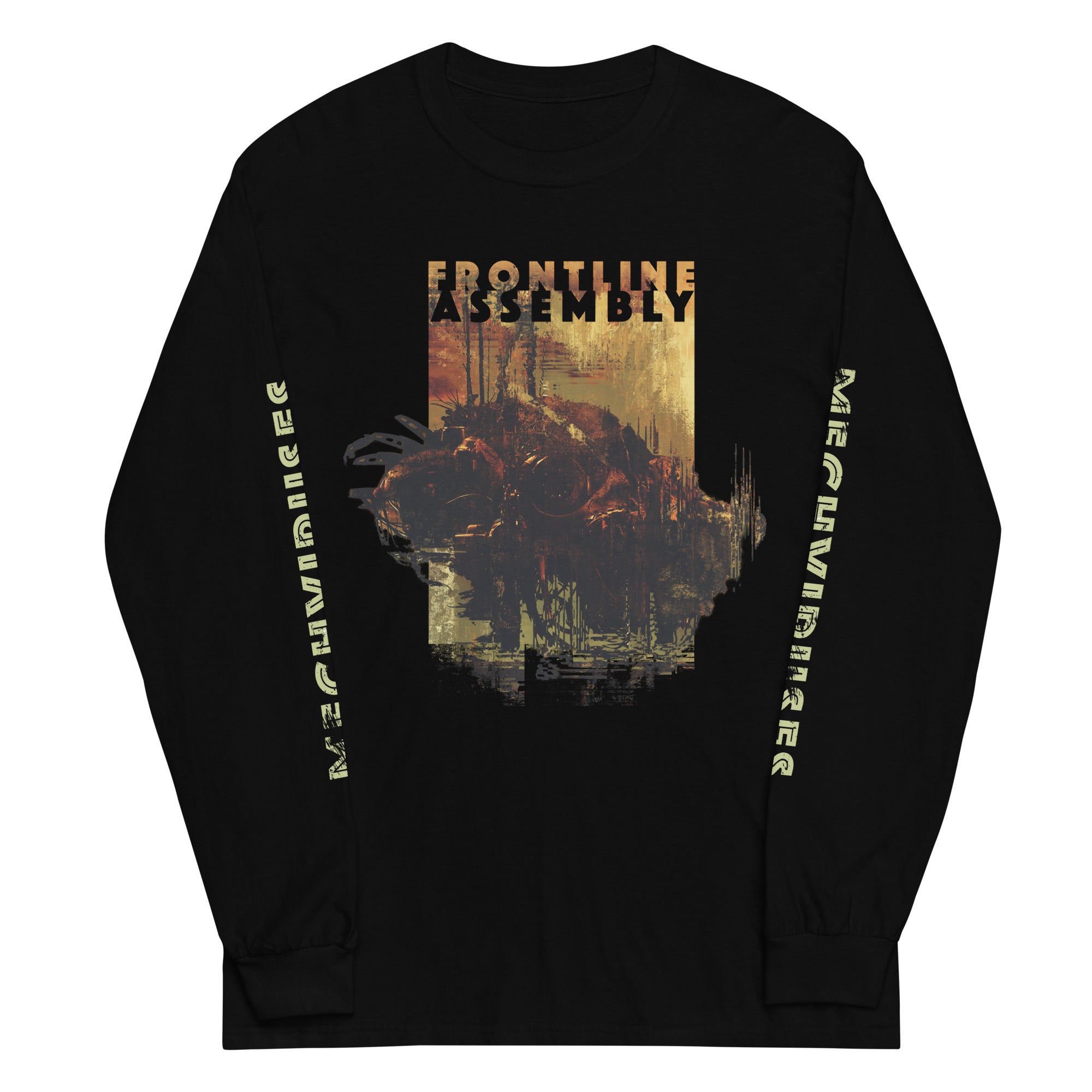 A beautifully designed long-sleeve with Front Line Assembly's Mechviruses design on the front, as well as print on both sleeves!